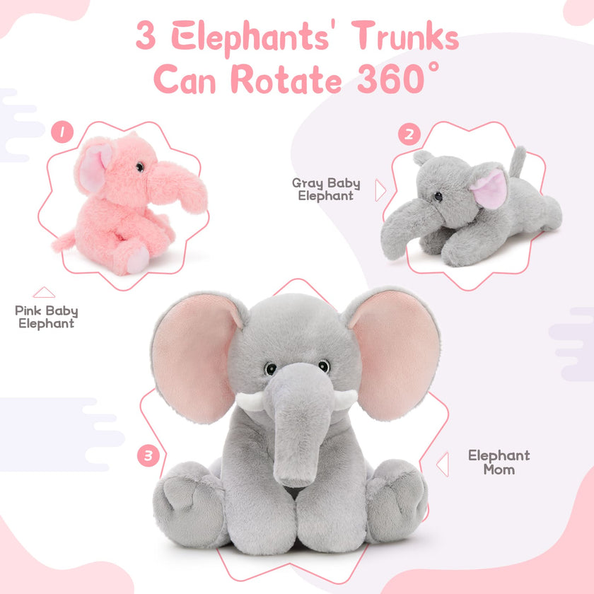 Elephant Stuffed Animals with Babies Inside, Grey, 15.7 Inches