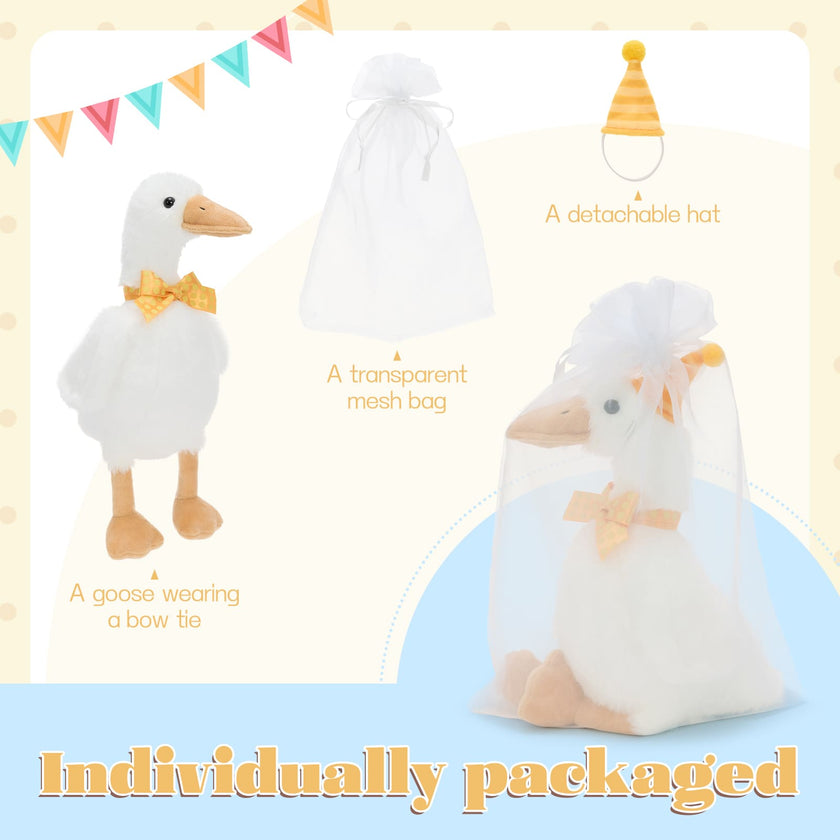 10 Pcs Cute Goose Plush Toy with Party Hat & Bow Tie, 11.8 Inches