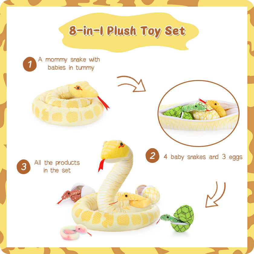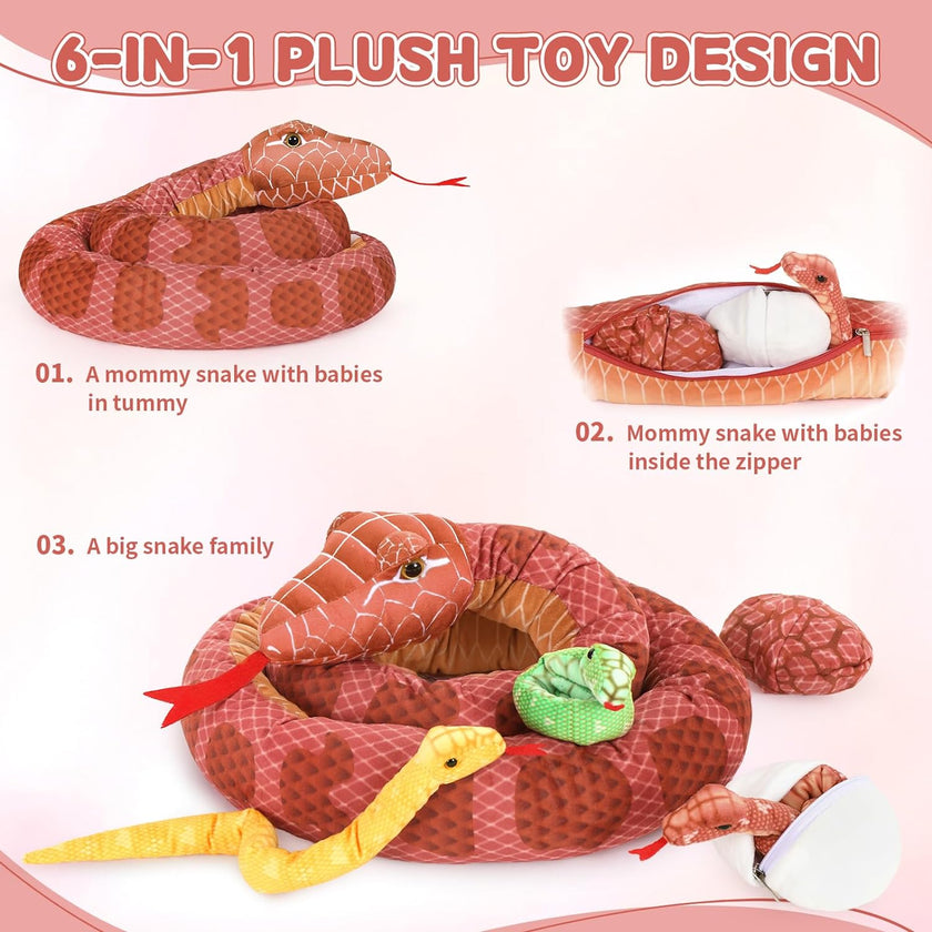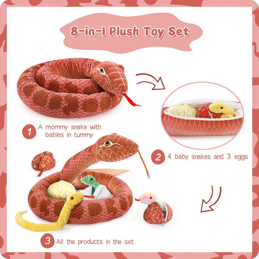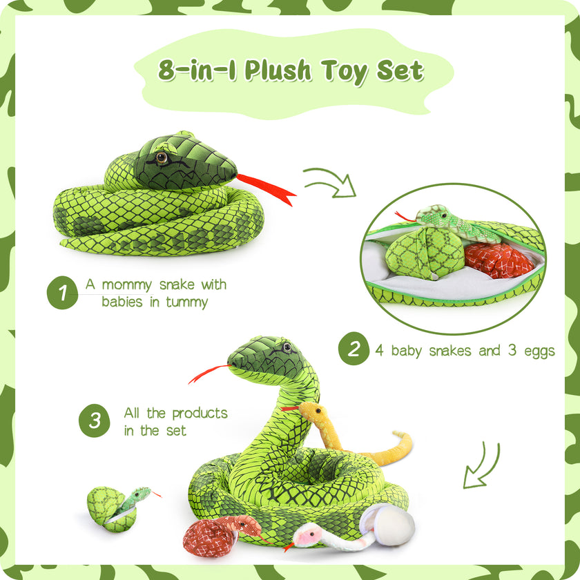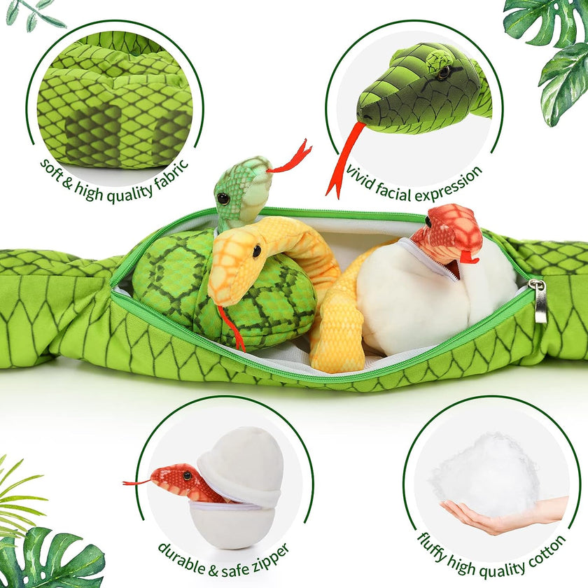 Snake Stuffed Animal Toy Set, Green/Yellow/Red/Pink/Brown, 79/118 Inches