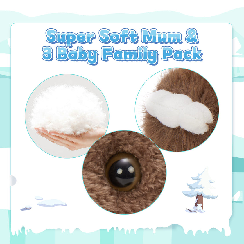 Bison Stuffed Animals with 3 Babies Inside, Dark Brown, 18 Inches
