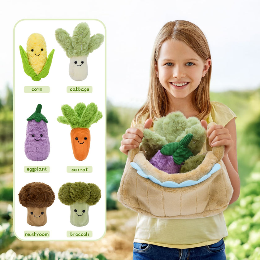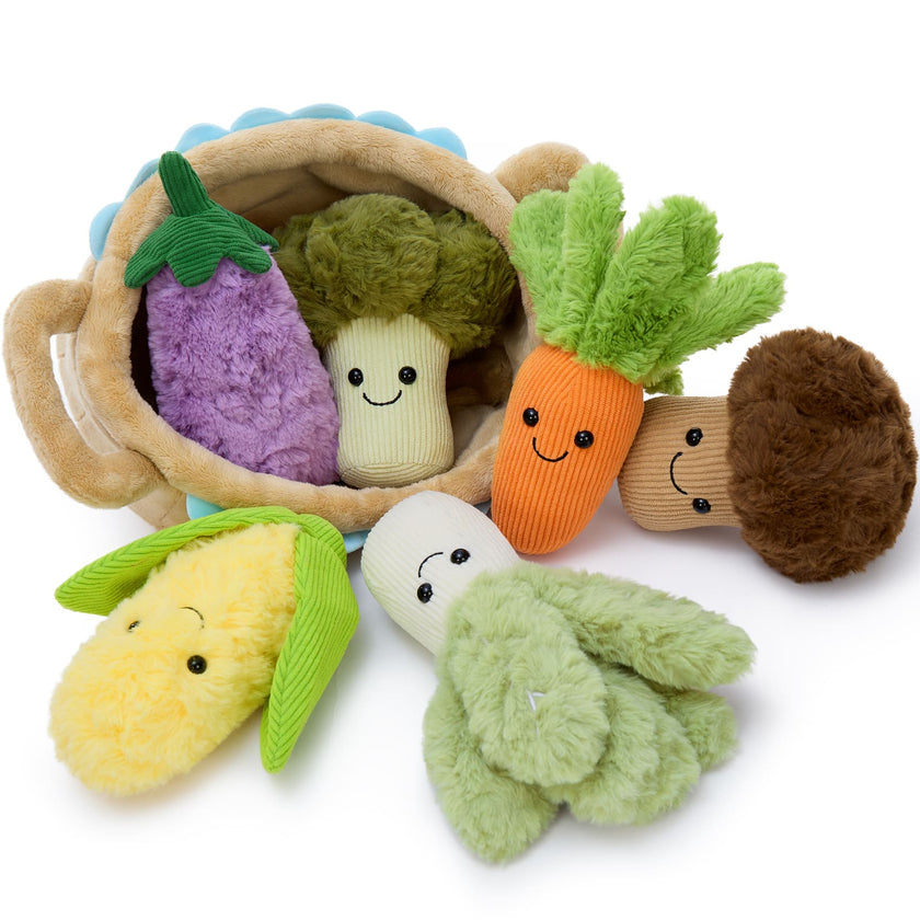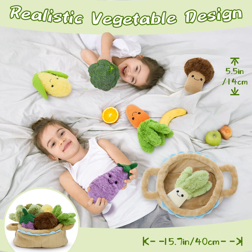 Plush Veggie Basket with 6 Stuffed Vegetable Toys, 15.7 Inches