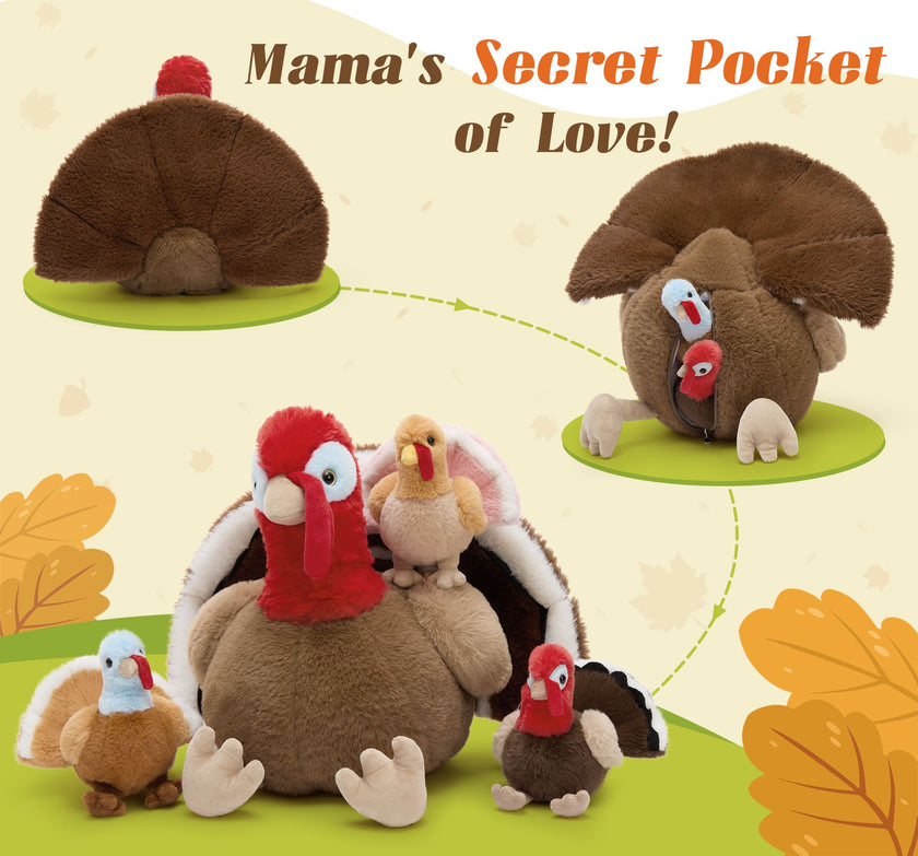 Bison Stuffed Animals with 3 Babies Inside, Dark Brown, 18 Inches