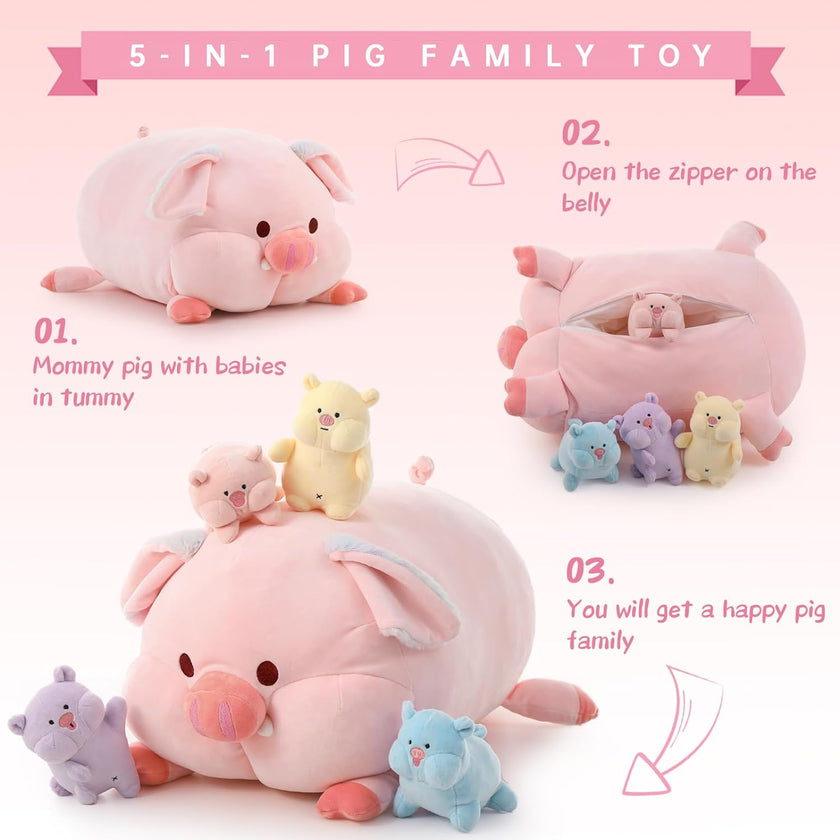 Turtle Stuffed Animal Toy with 3 Baby Turtles, 13 Inches