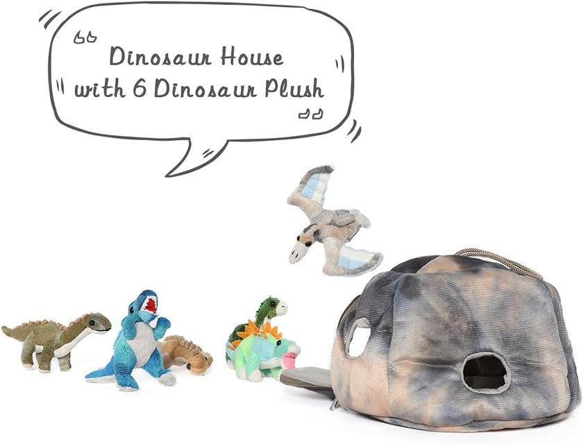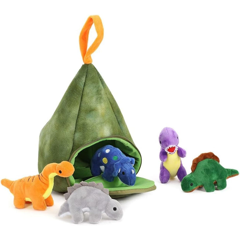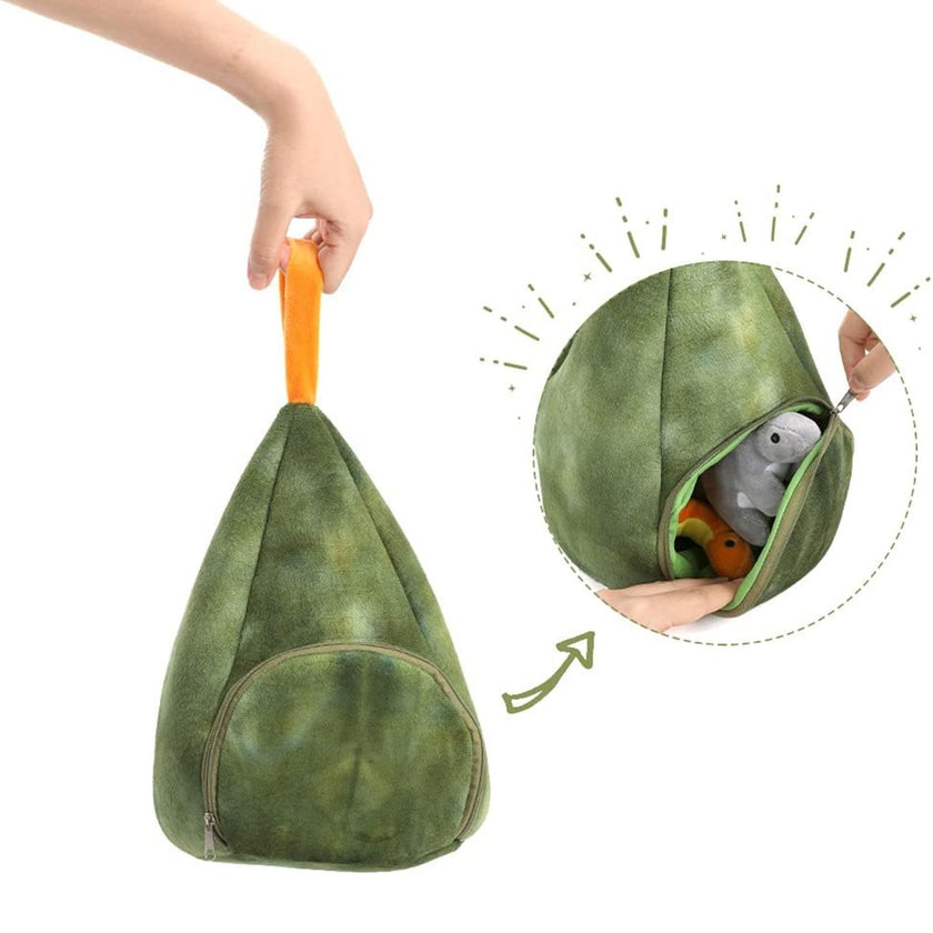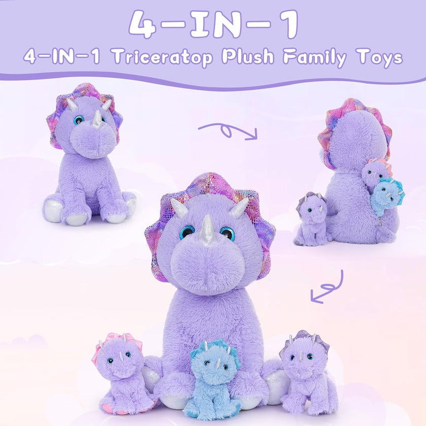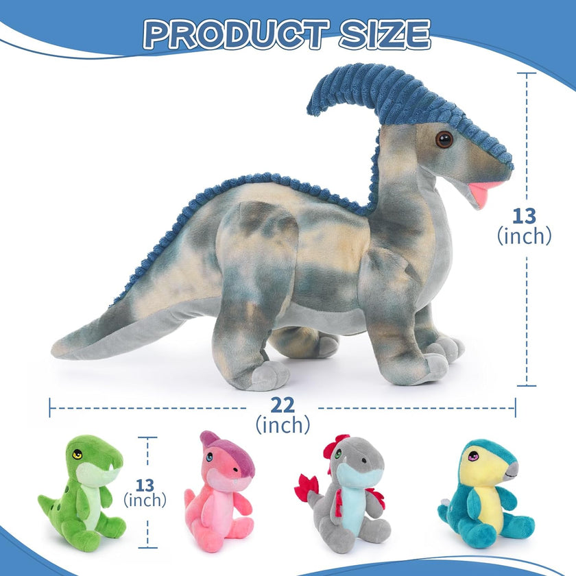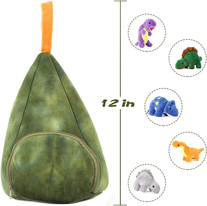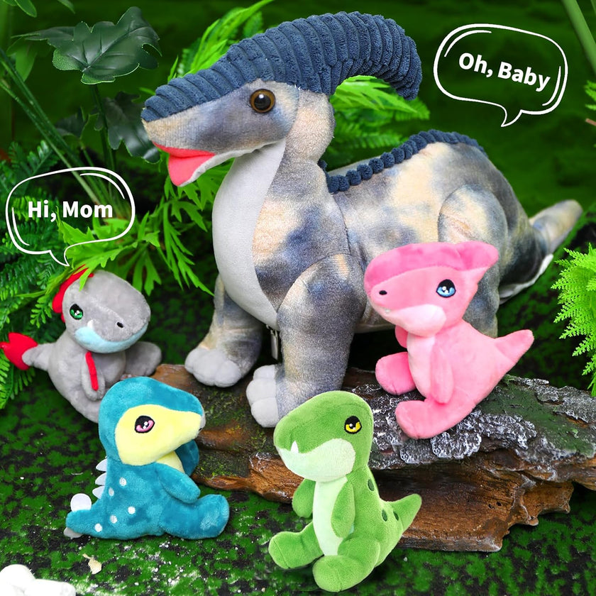 Dinosaur Plush Toy with 3 Baby Dinosaurs, Green/Pink, 17.6 Inches