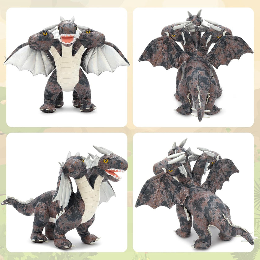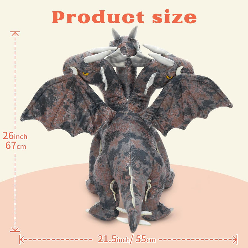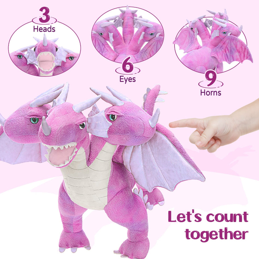 Triple-Headed Flying Dragon Plush Toys, Grey/Pink, 21.6 Inches