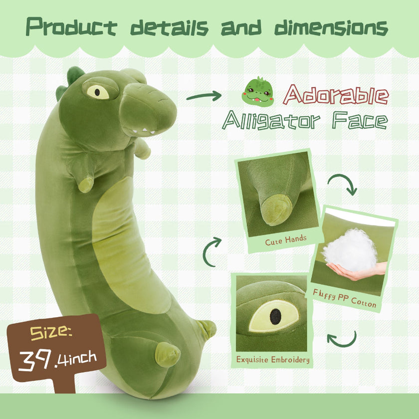 Crocodile Long Throw Pillow Alligator Stuffed Animals, Green, 39 Inches