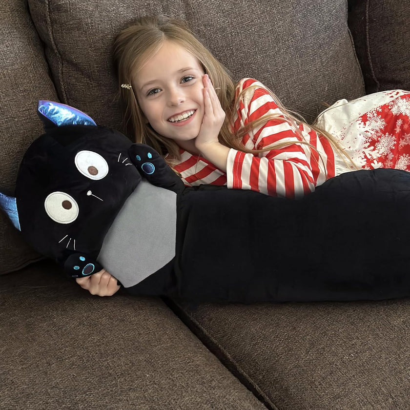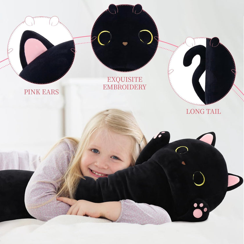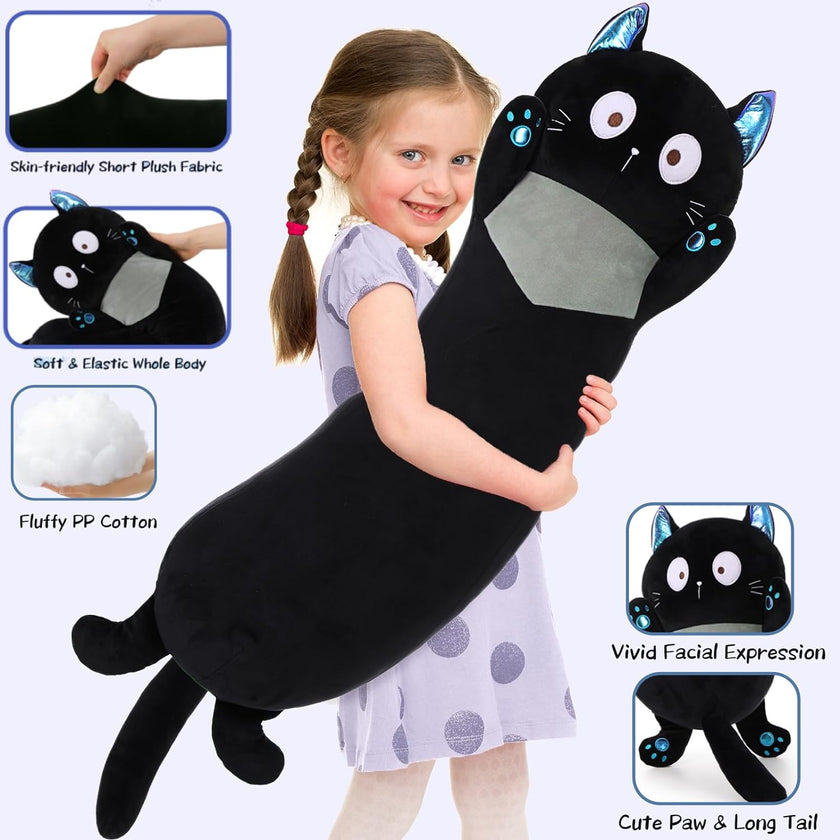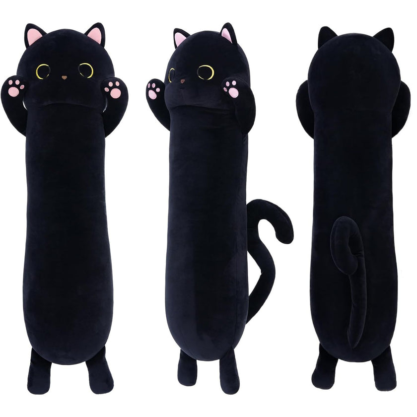 Black Cat Stuffed Animals Cat Long Throw Pillow, 43 Inches