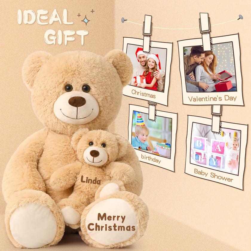 Create a one-of-a-kind keepsake with our Custom Teddy Bear Collection! Each teddy bear can be beautifully embroidered with a name, birth date, or any meaningful words, making it a heartfelt gift for any occasion. Perfect for birthdays, baby showers, anniversaries, or just to show someone you care. Soft, cuddly, and crafted with love, these personalized teddy bears are timeless treasures that bring comfort and joy to both kids and adults alike.