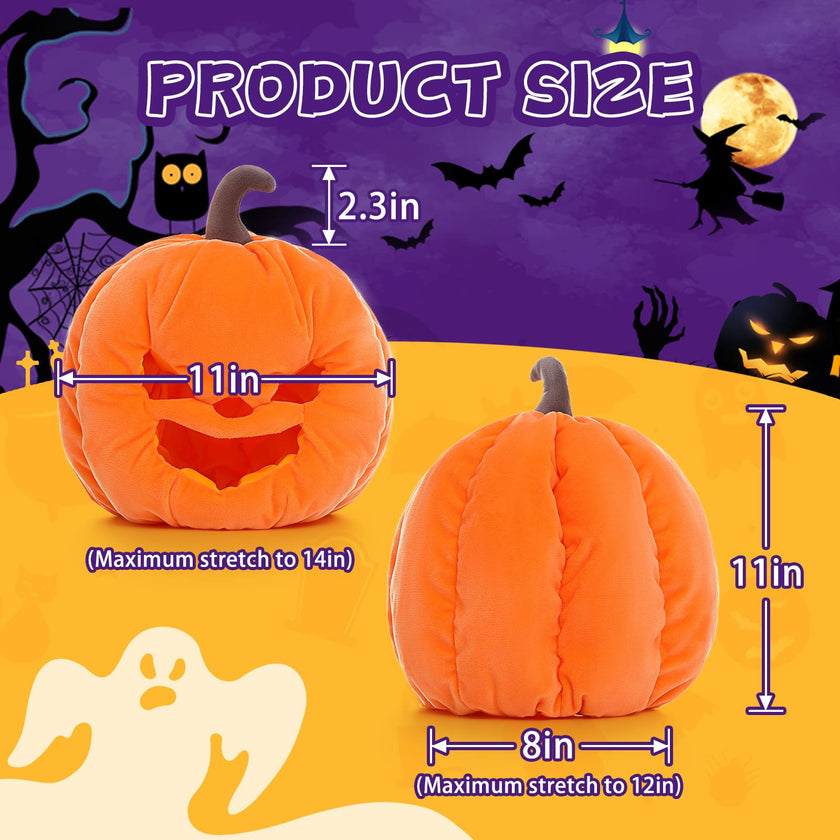 Pumpkin Plush Head Cover Halloween Head Mask, Orange, 11 Inches