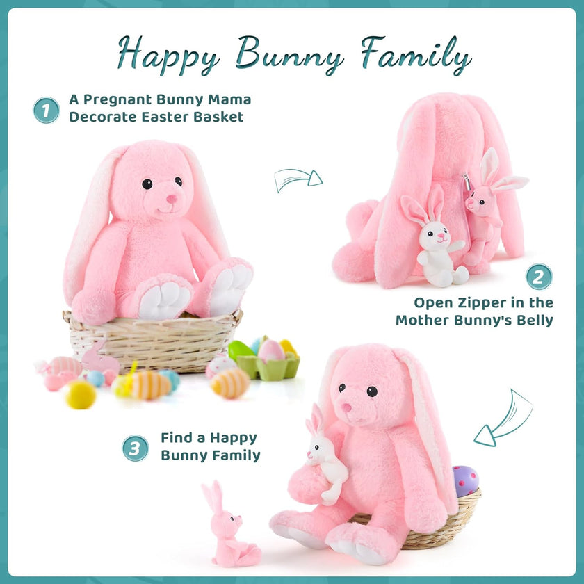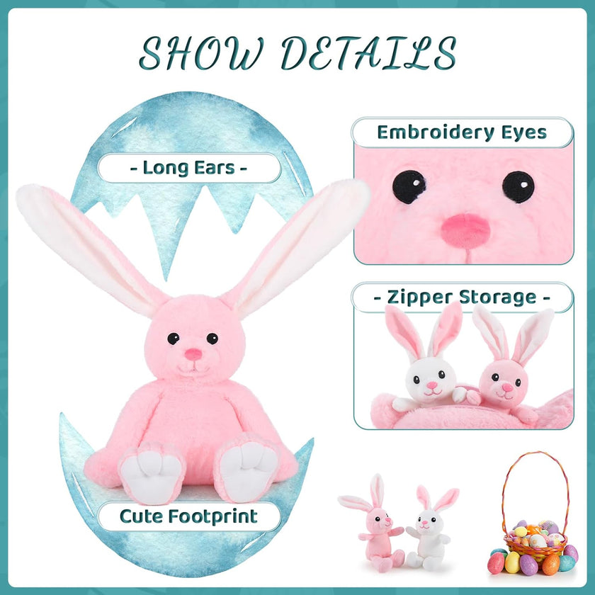 Bunny Stuffed Animal Toy Set, Pink/Grey, 24 Inches