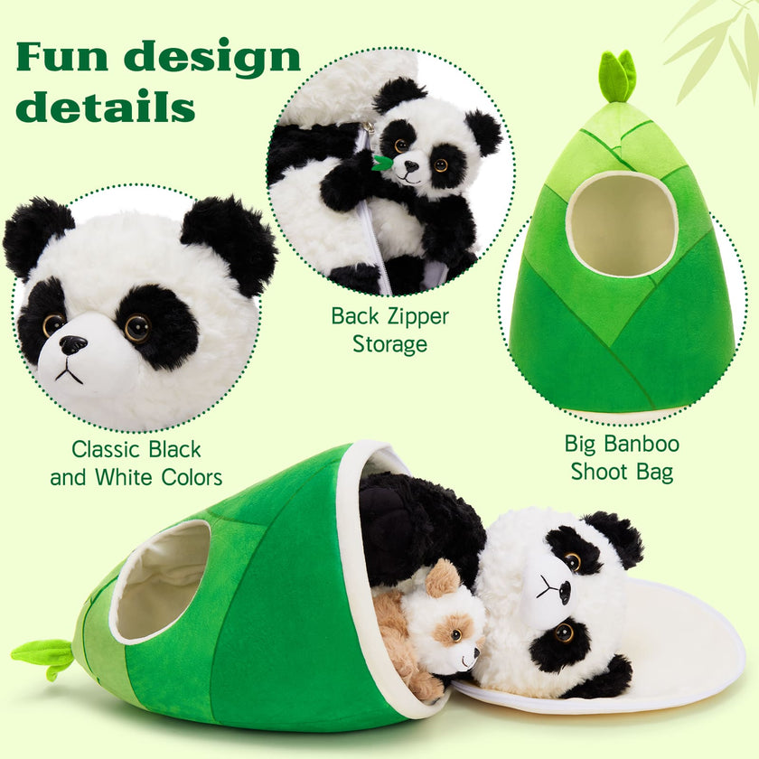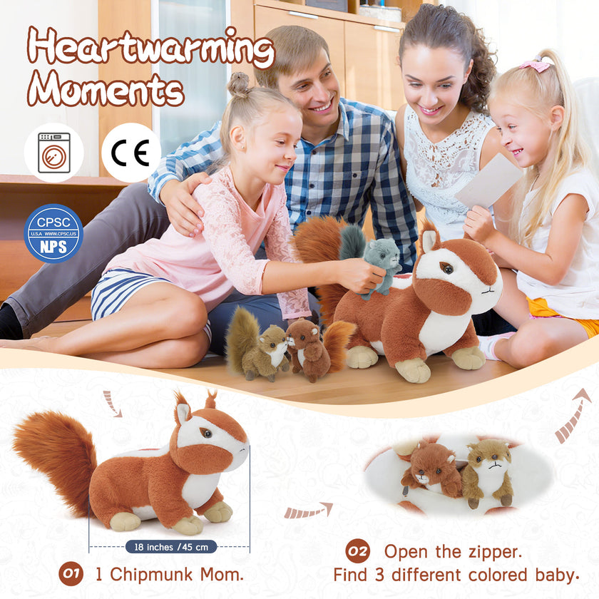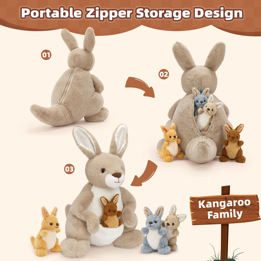 Bison Stuffed Animals with 3 Babies Inside, Dark Brown, 18 Inches