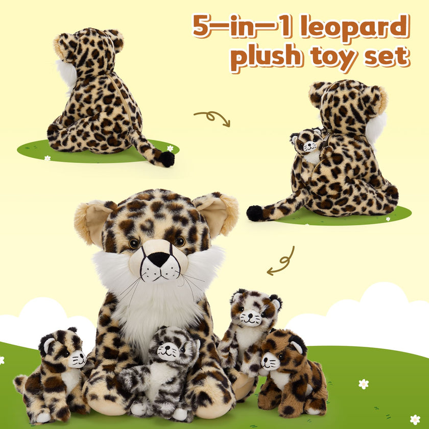 Lifelike Leopard Stuffed Animals Panther Plush Toys, 14.2 Inches