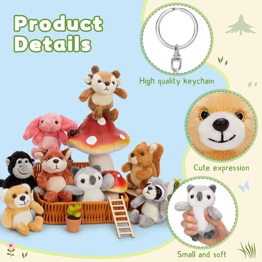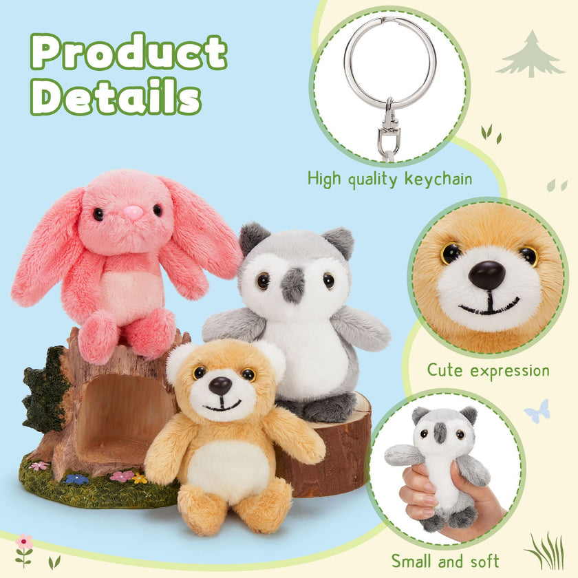 Mini Bulk Plush Keychains Animal Plush Toy Assortment, 5 Inches