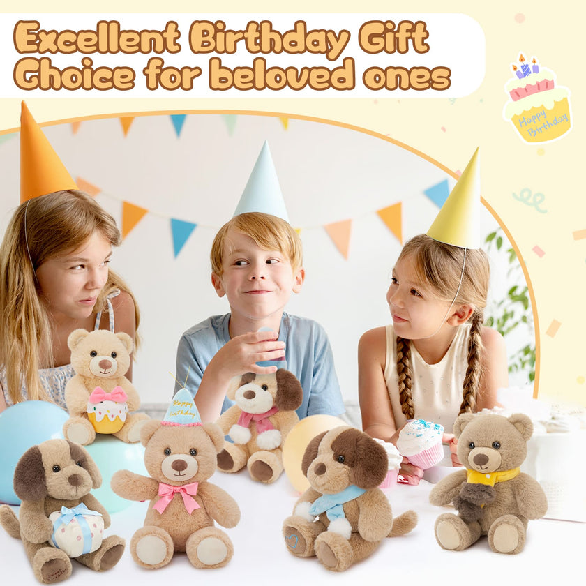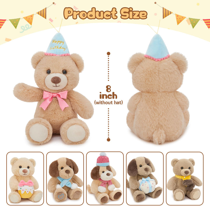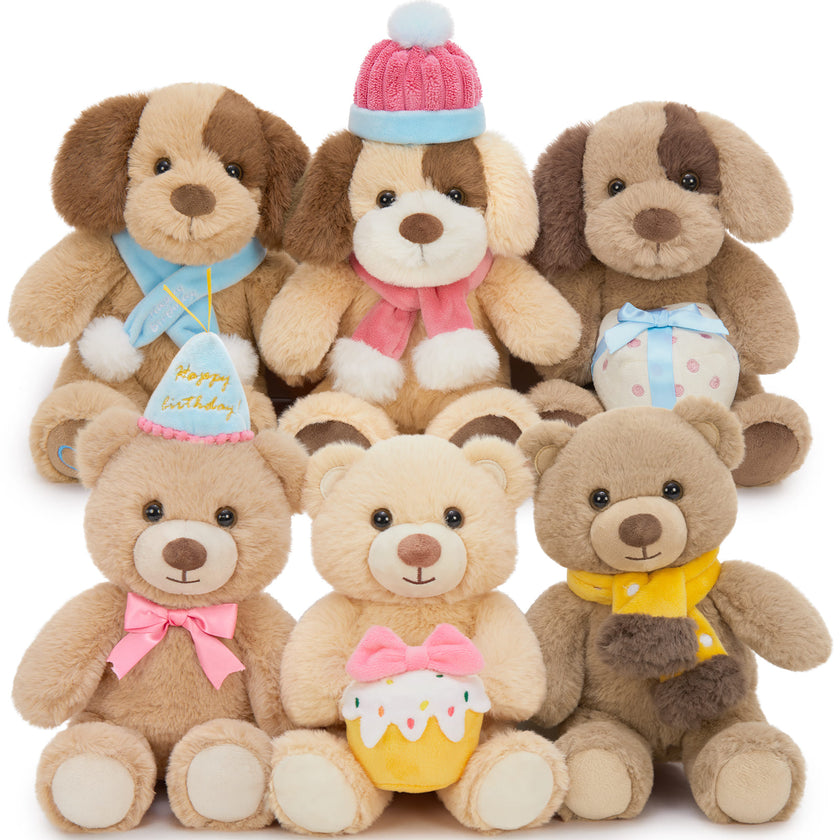 6 Pcs Birthday Dog Stuffed Animals Teddy Bear Plush Toys, 8 Inches