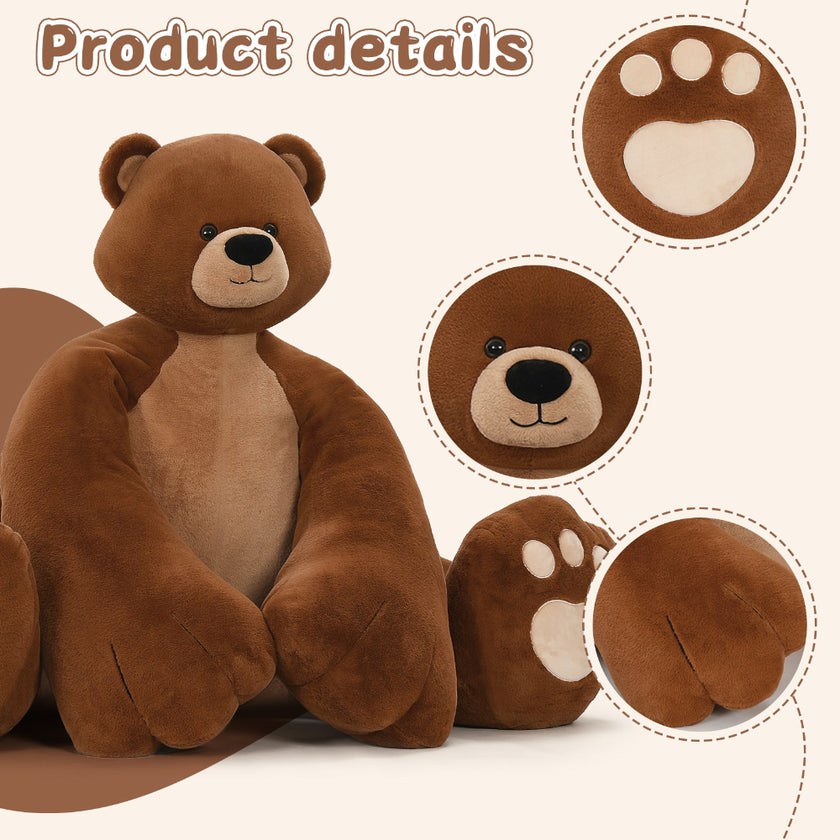 Giant Teddy Bear Stuffed Animals, Brown/Pink/Beige, 5 Feet