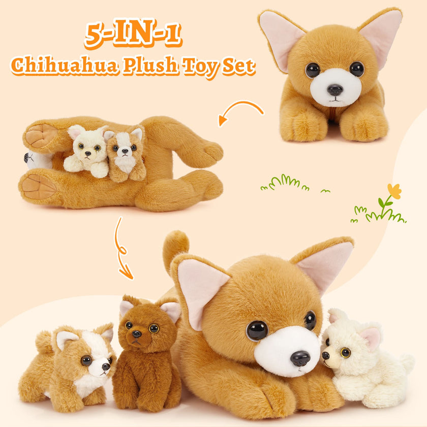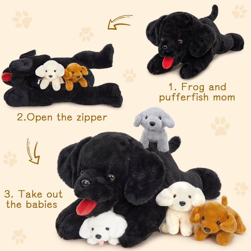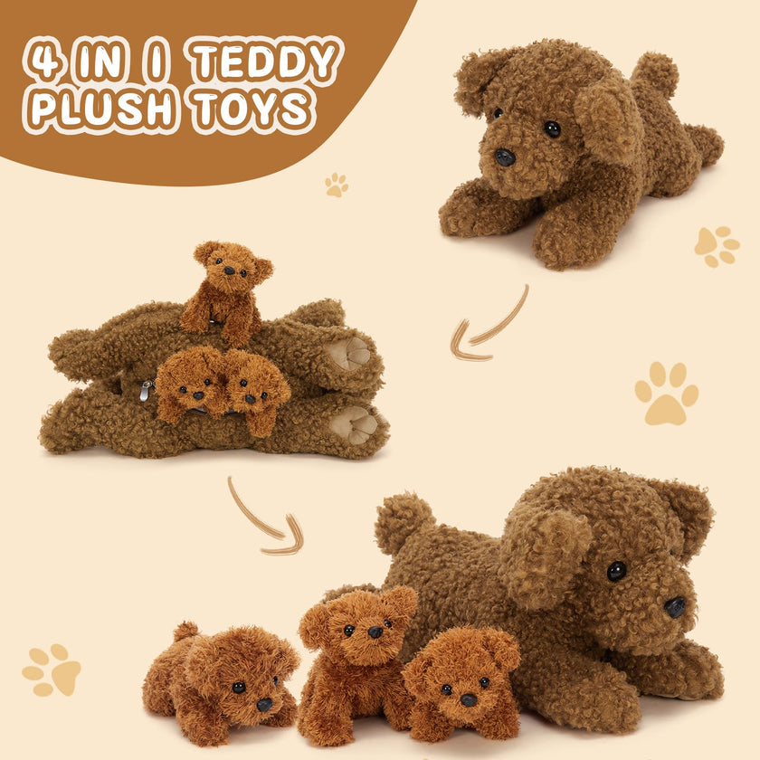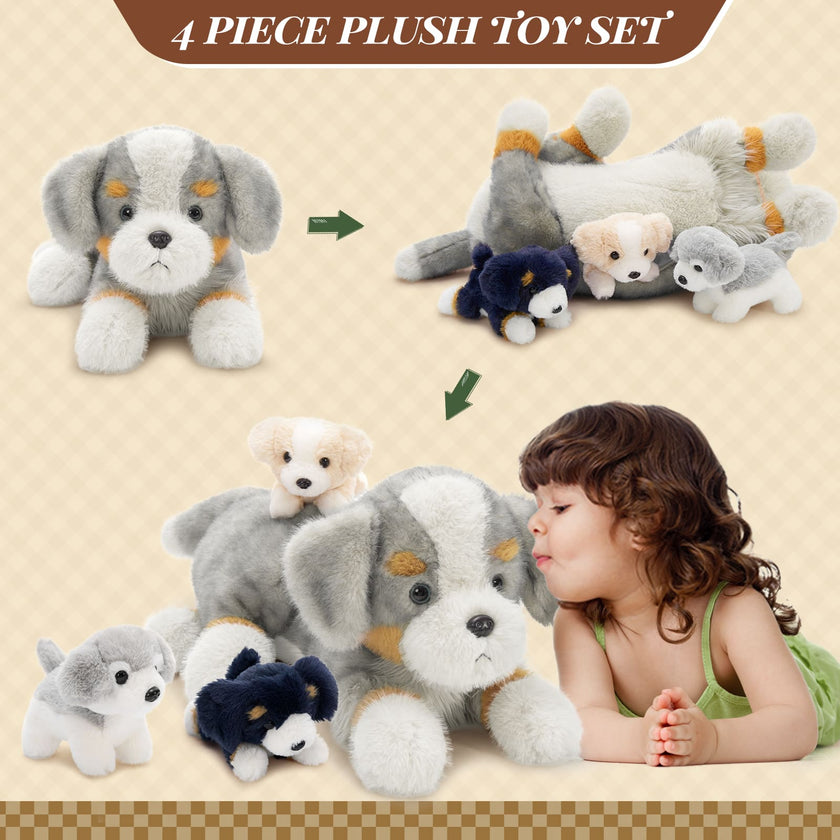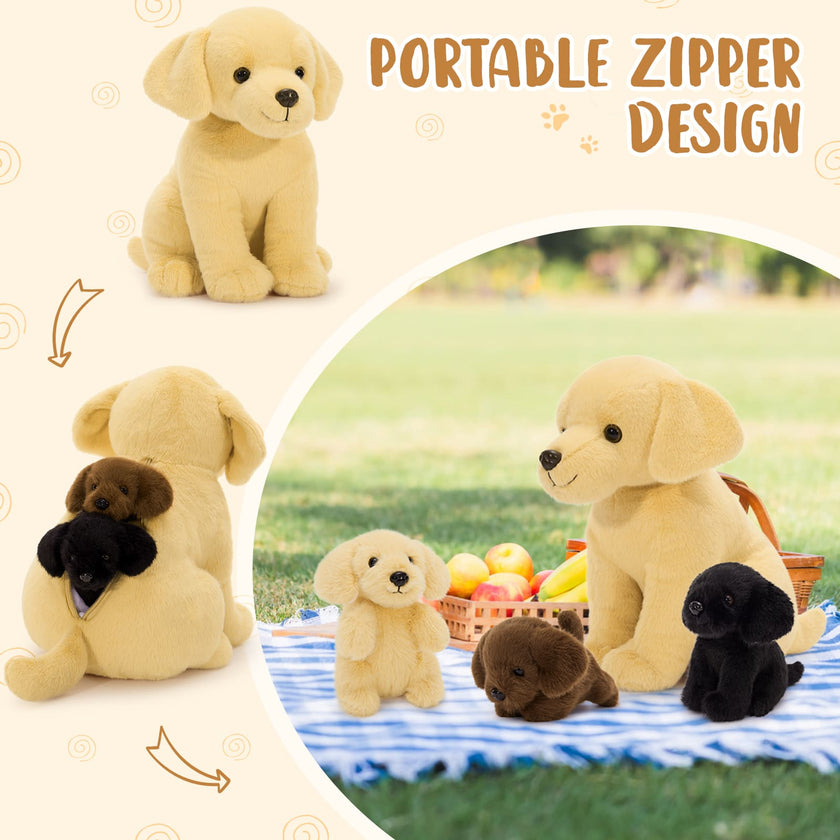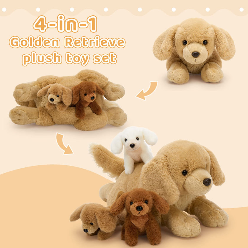 3 Golden Retriever Stuffed Animal Babies with Their Mom, 17.7 Inches