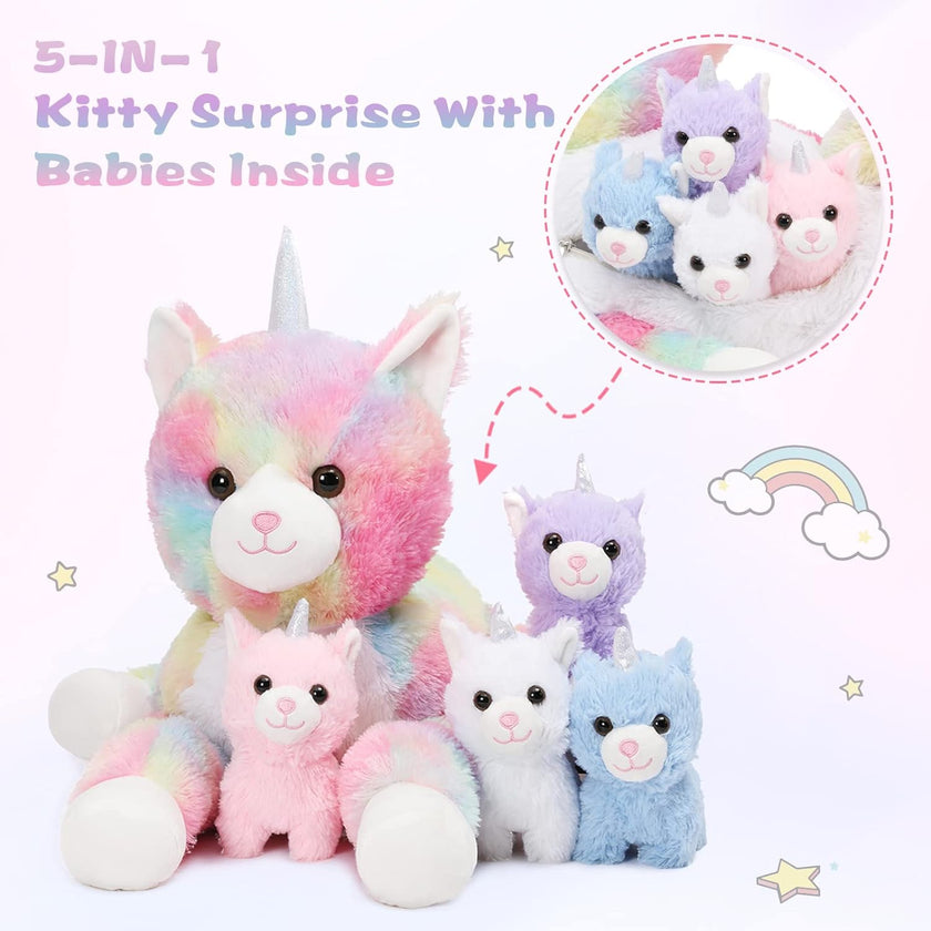 Cat Stuffed Animal Kitten Plush Toys, Orange/Grey/Tie-Dye, 16 Inches