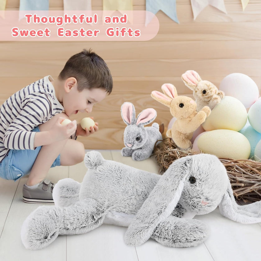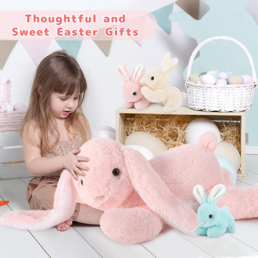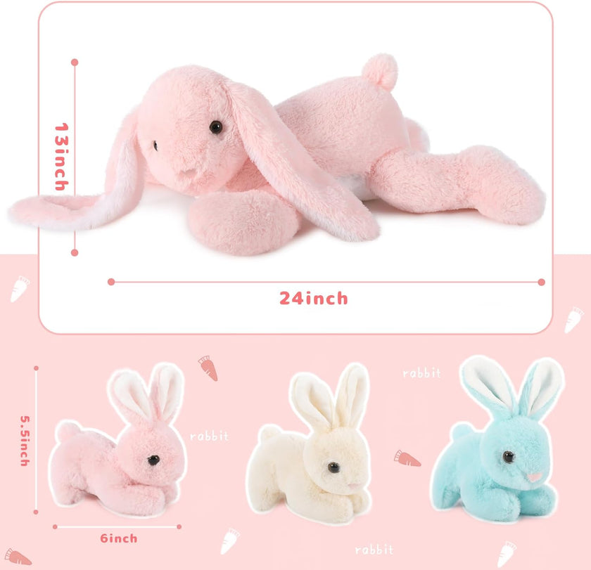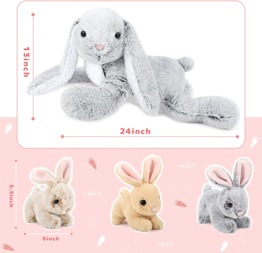 Bunny Stuffed Animal Toy Set, Pink/Grey, 24 Inches