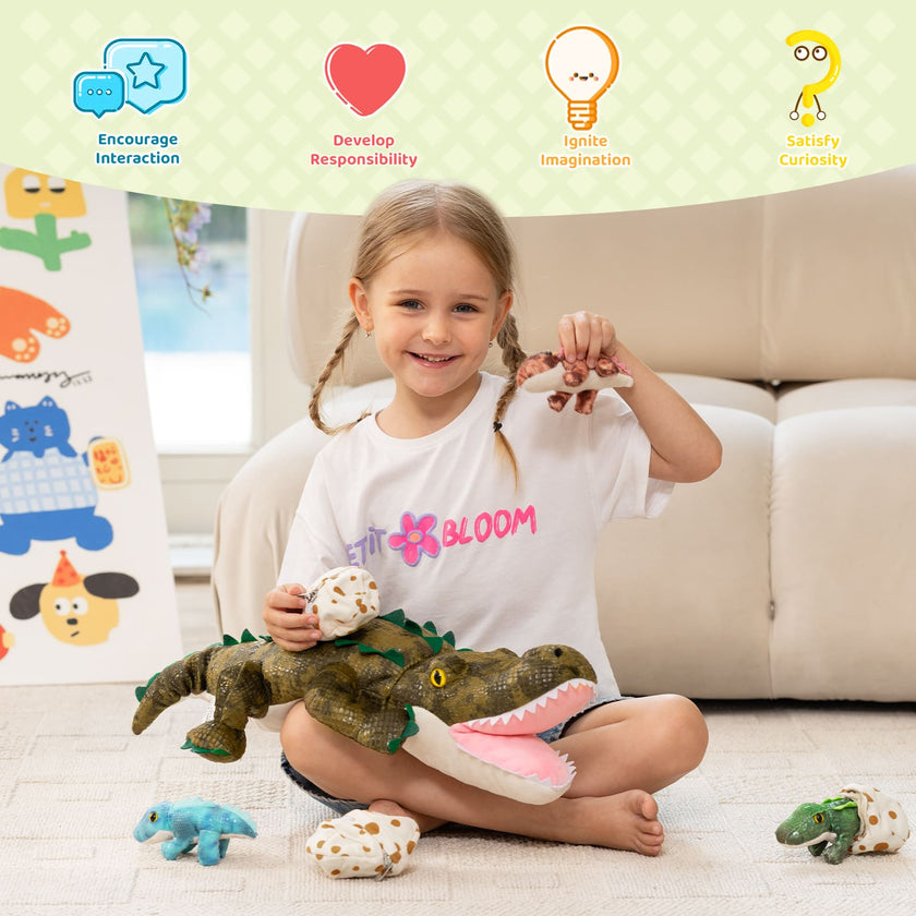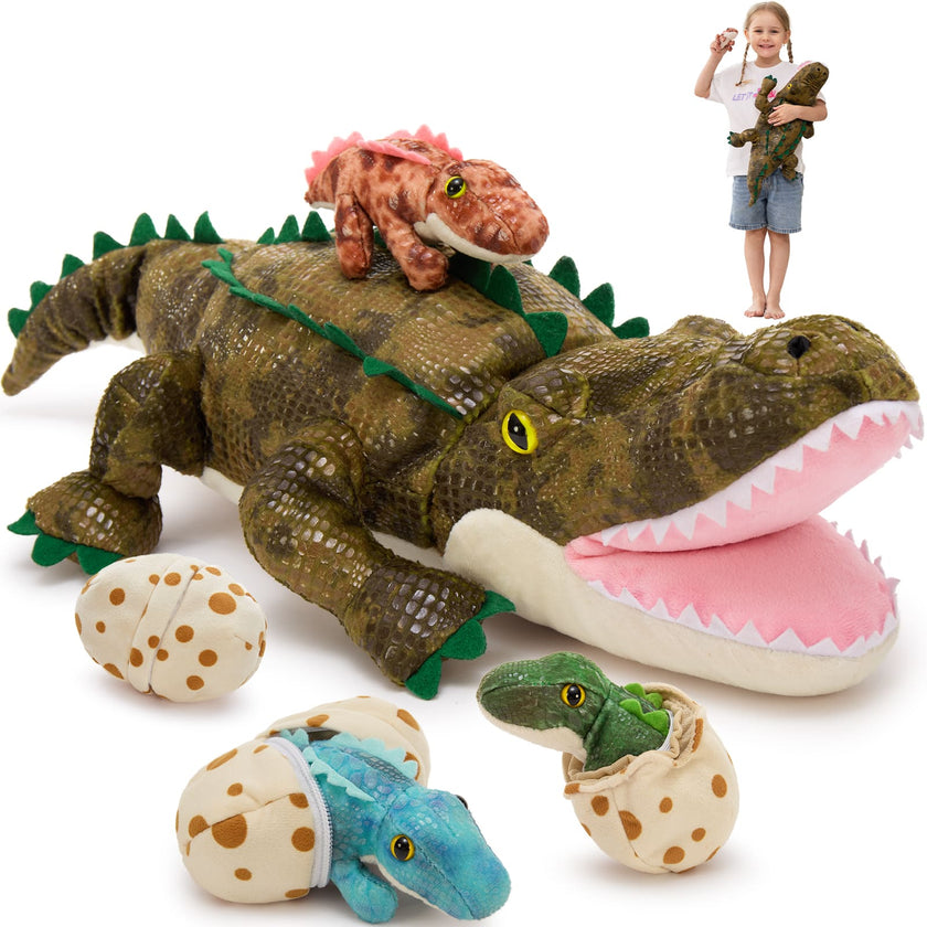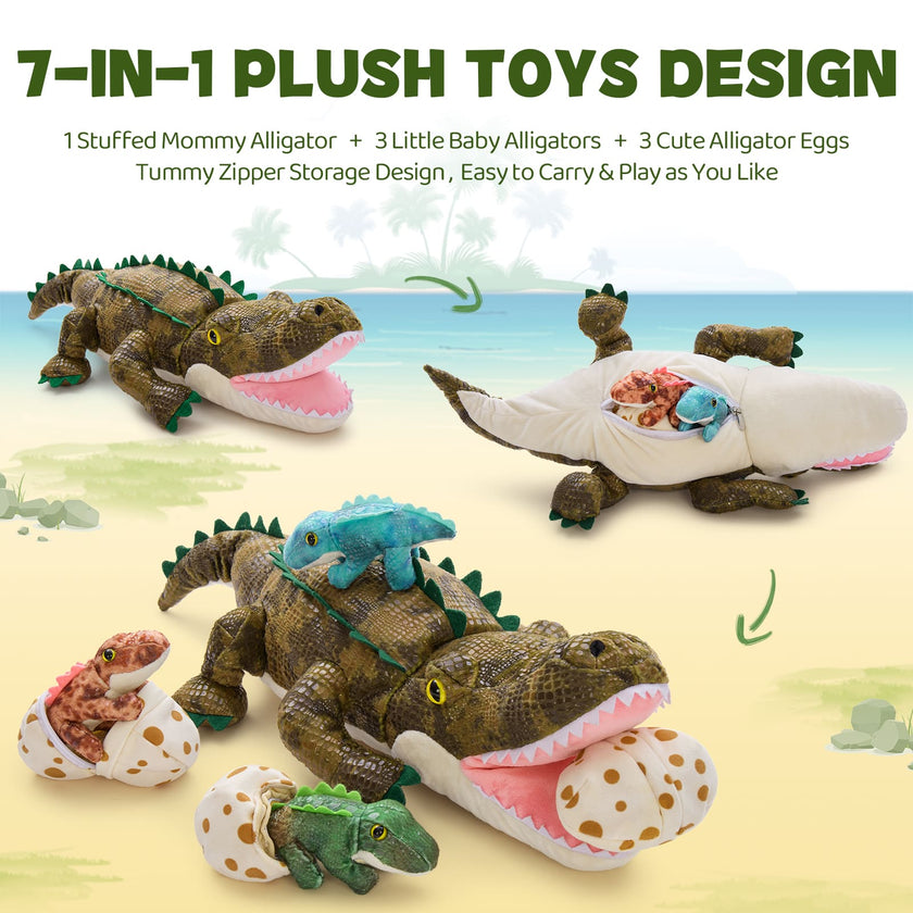 Mom Crocodile with 3 Baby Crocodile Plushies, 23.6 Inches
