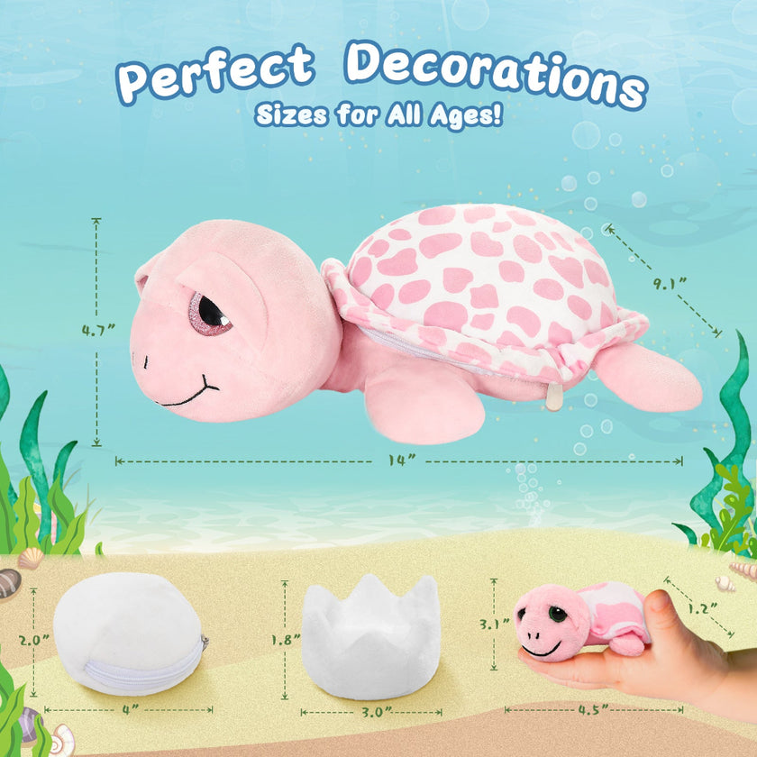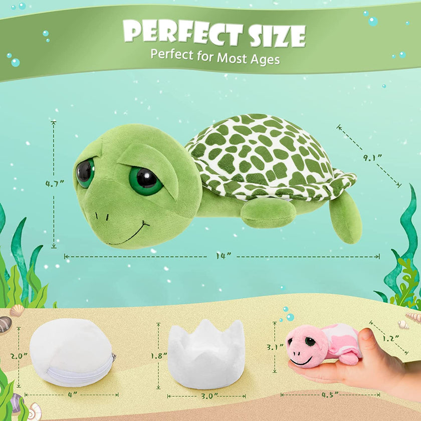 Cute Sea Turtle Stuffed Toy Set, Green/Pink, 14 Inches