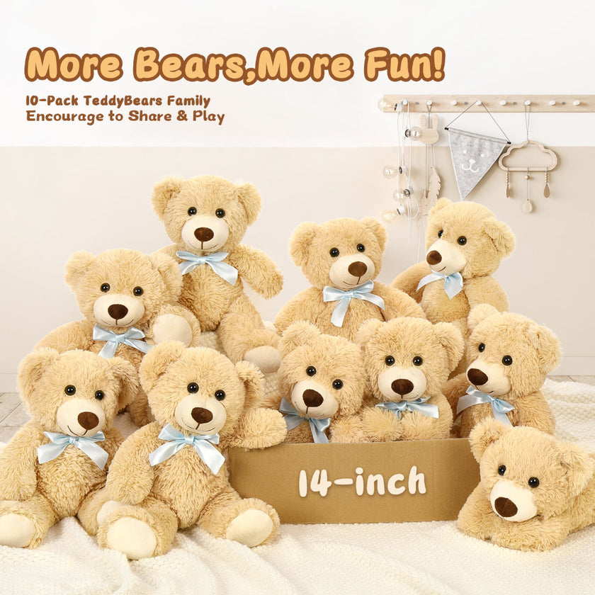 10 Pcs Teddy Bear Stuffed Animals Bulk, Light Brown, 14 Inches