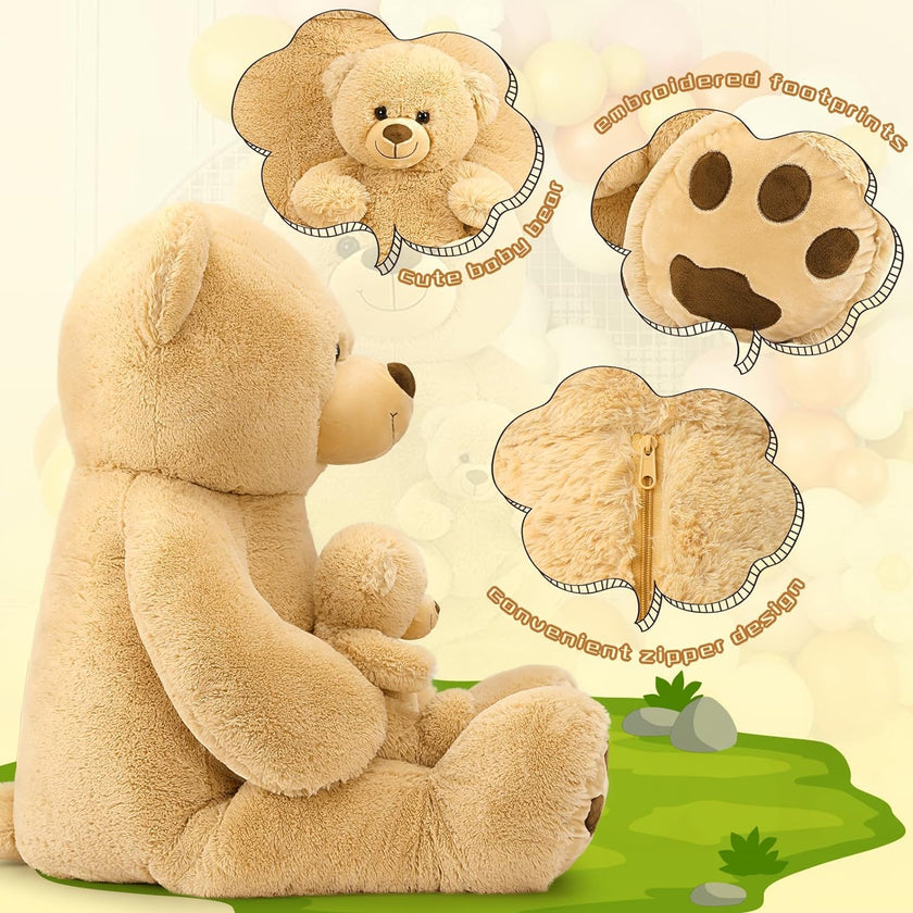 Giant Teddy Bear Stuffed Animals, Brown/Pink/Beige, 5 Feet