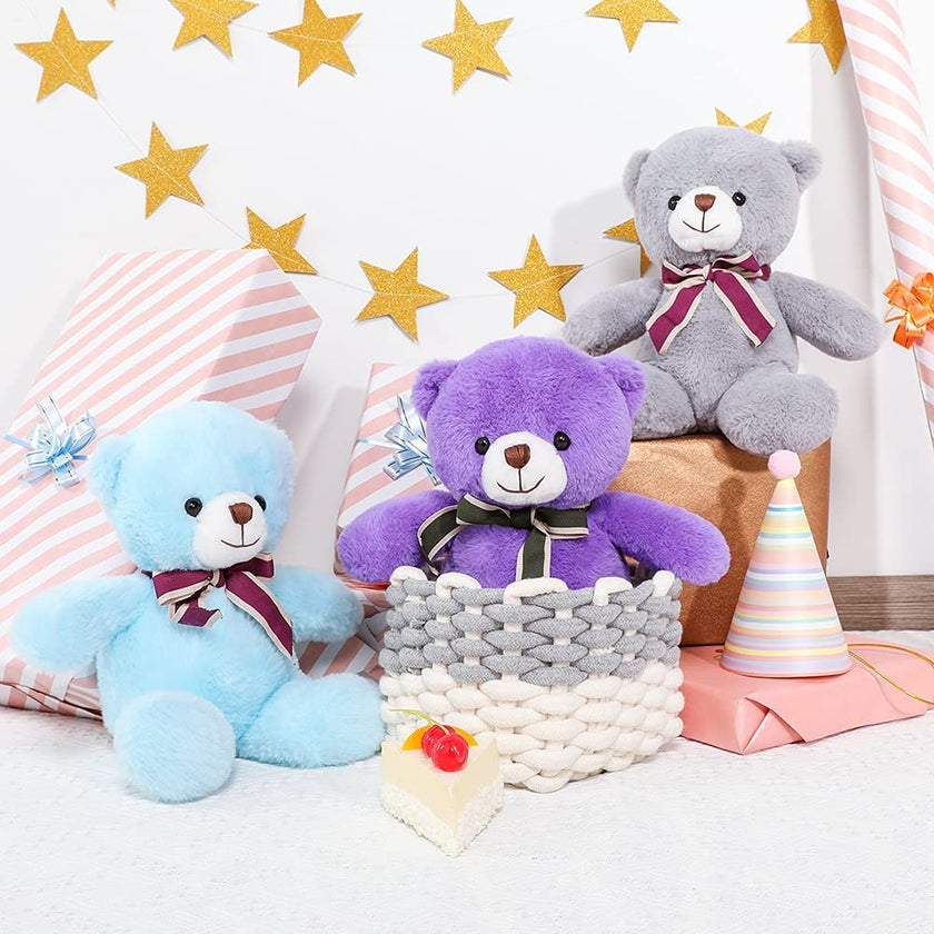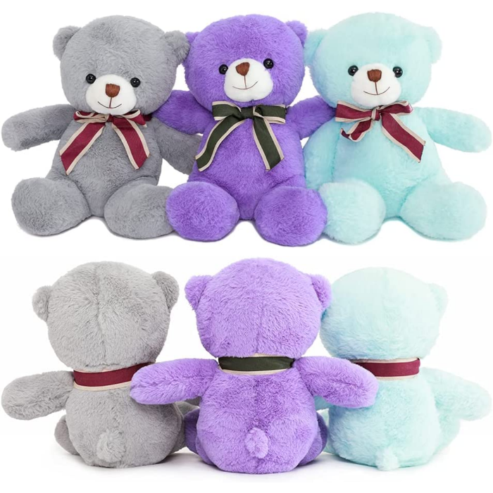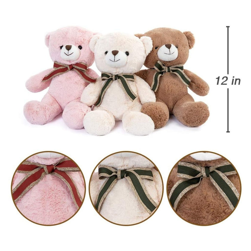 3-Pack Teddy Bear Stuffed Toy Set, White/Grey/Light Brown, 13.8 Inches