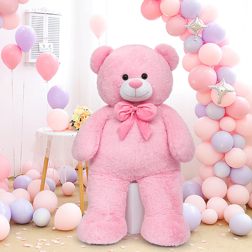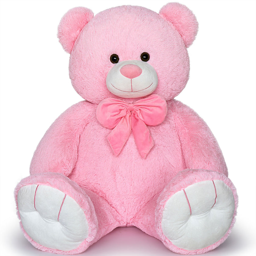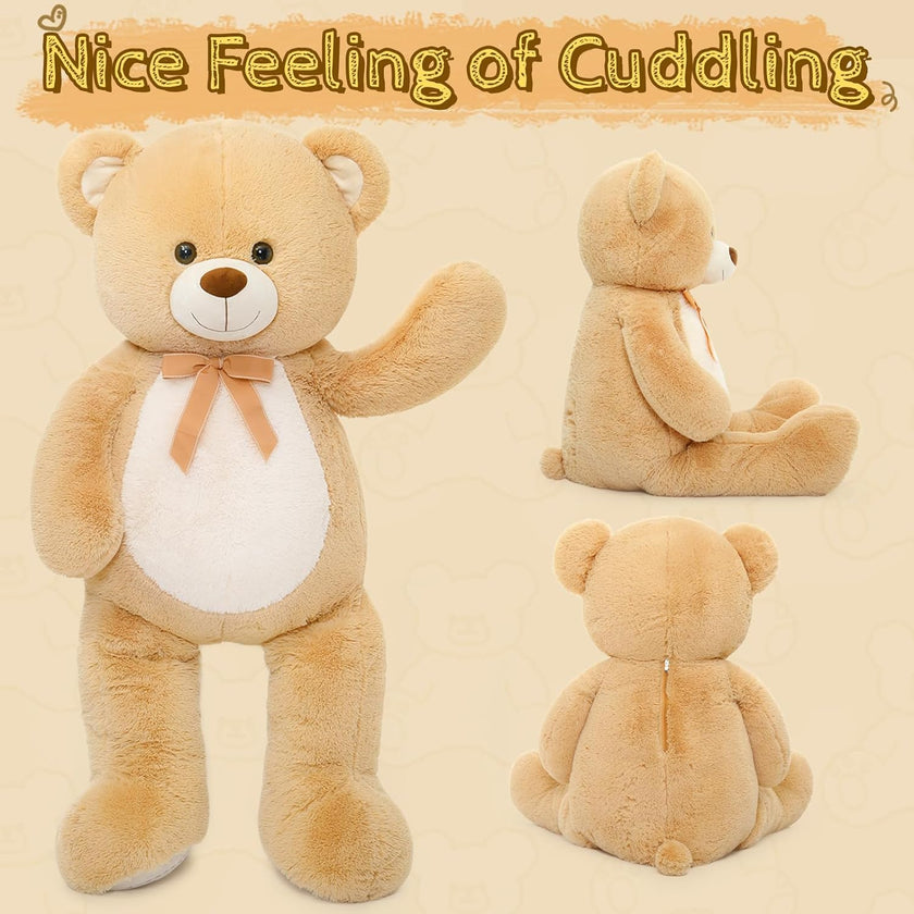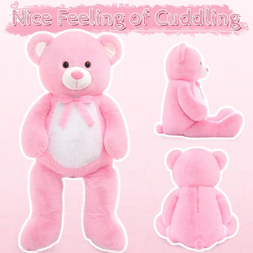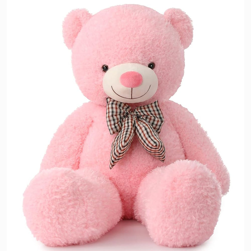Big Teddy Bear Plush Toy, Light Brown/Dark Brown/Pink, 51 Inches