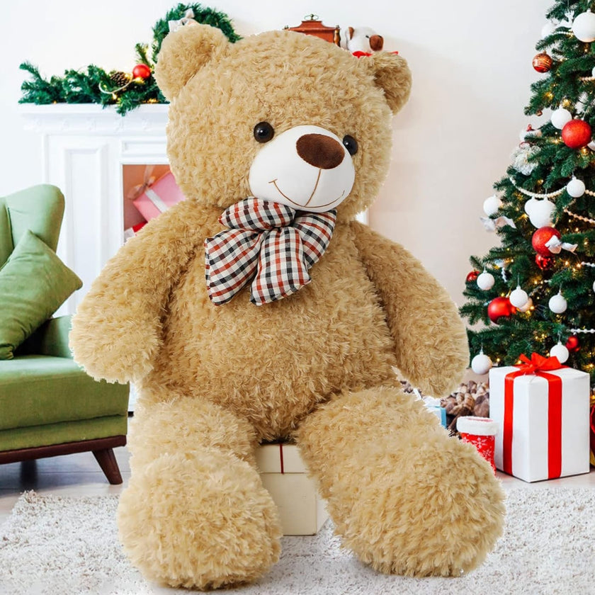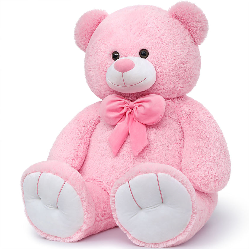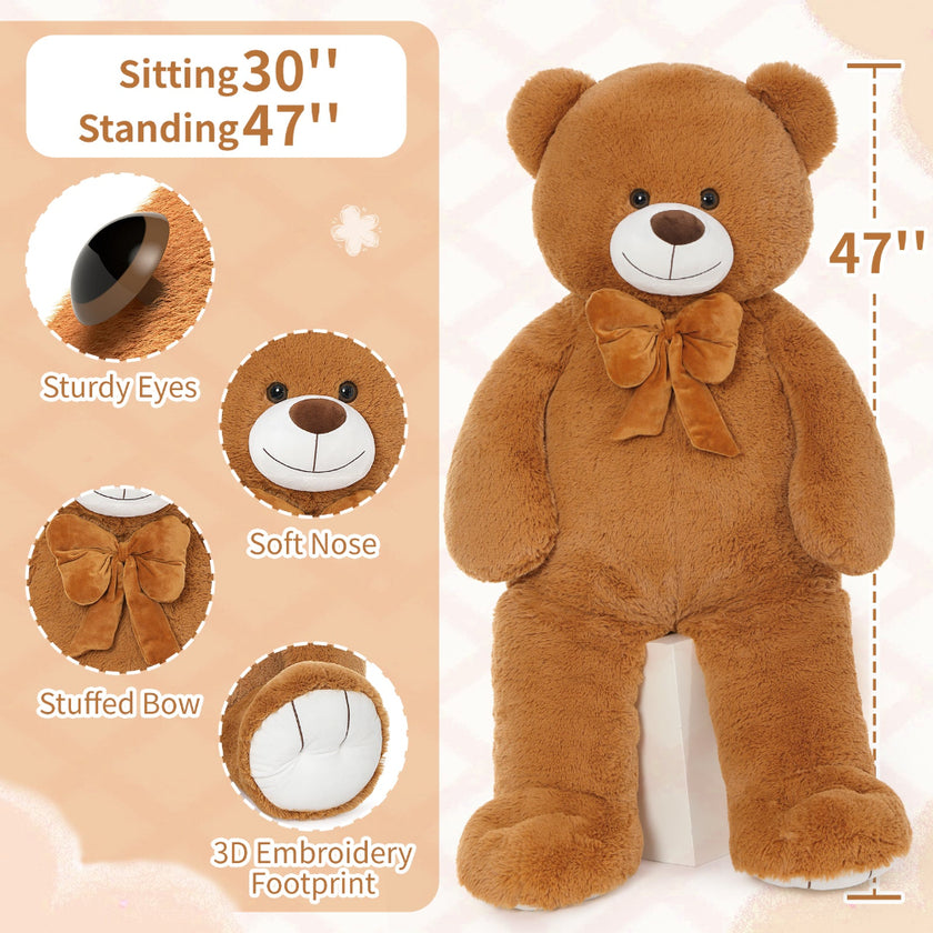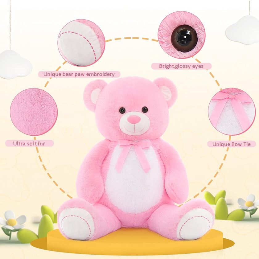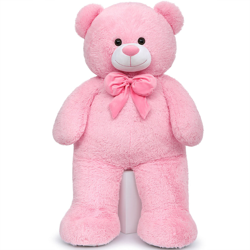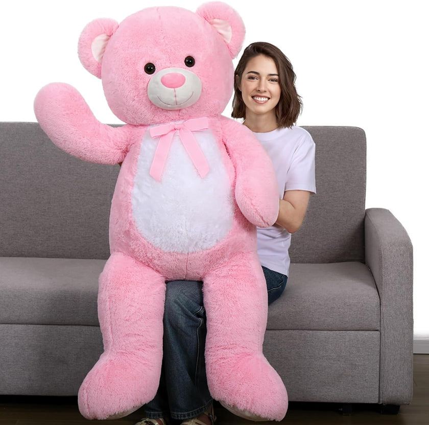Big Teddy Bear Plush Toy, Light Brown/Dark Brown/Pink, 51 Inches