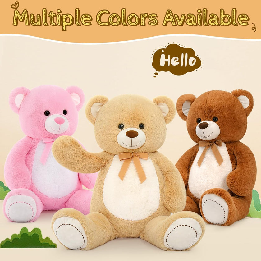 Big Teddy Bear Plush Toy, Beige/Pink/Brown/Blue, 47/59 Inches