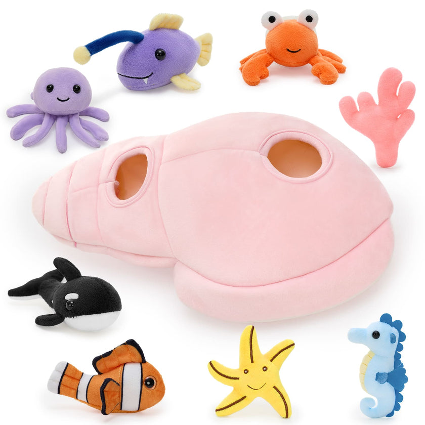 Pink Plush Conch with Seven Ocean Stuffed Animals, 12.6 Inches