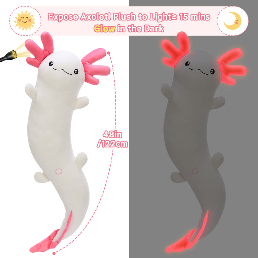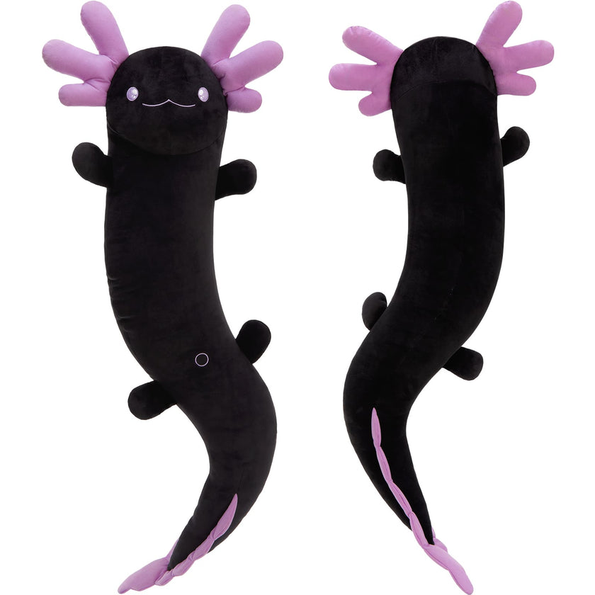Giant Cozy Axolotl Long Throw Pillow, Red/Pink/Mint Green/Blue, 48 Inches