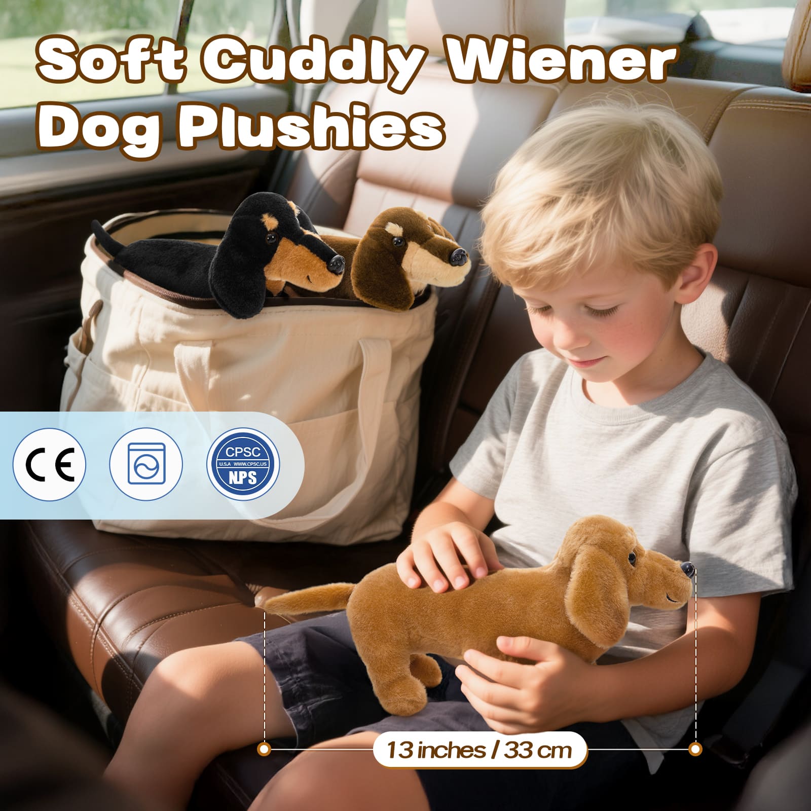 Three Dachshund Plush Toys Dog Stuffed Animals, 13 Inches
