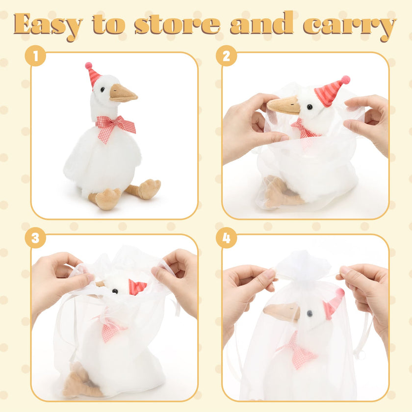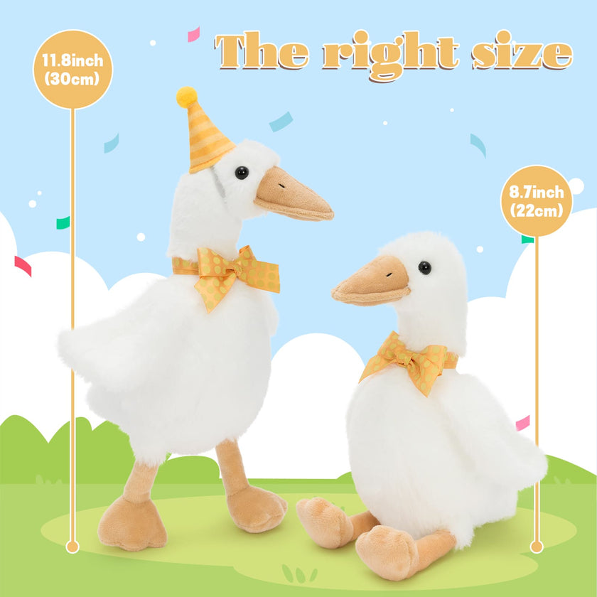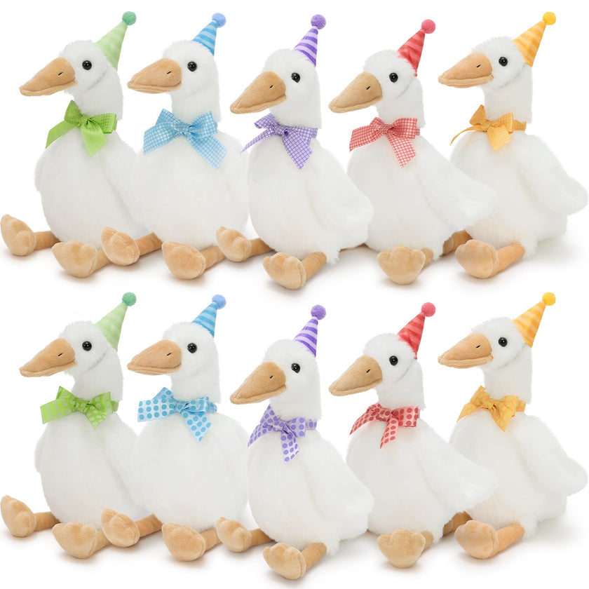 10 Pcs Cute Goose Plush Toy with Party Hat & Bow Tie, 11.8 Inches